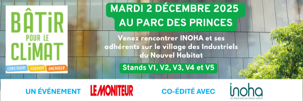 Dans le cadre de sa démarche RSE pour engager et accompagner les industriels du Nouvel Habitat dans la décarbonation de leurs activités, INOHA est co-éditeur de BÂTIR POUR LE CLIMAT, événement dont l’objectif est de guider les acteurs de la construction dans leurs transformations pour bâtir de manière durable.